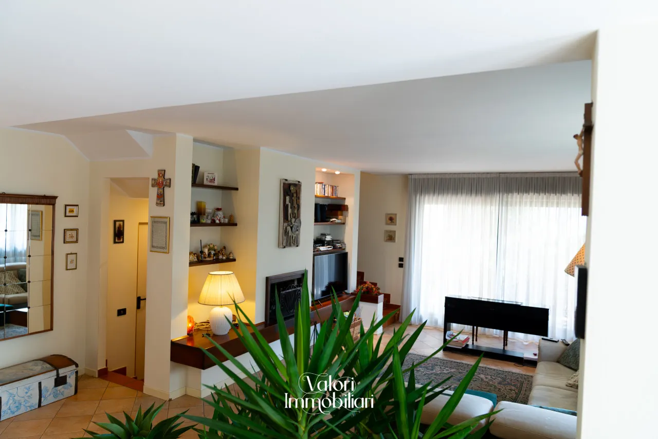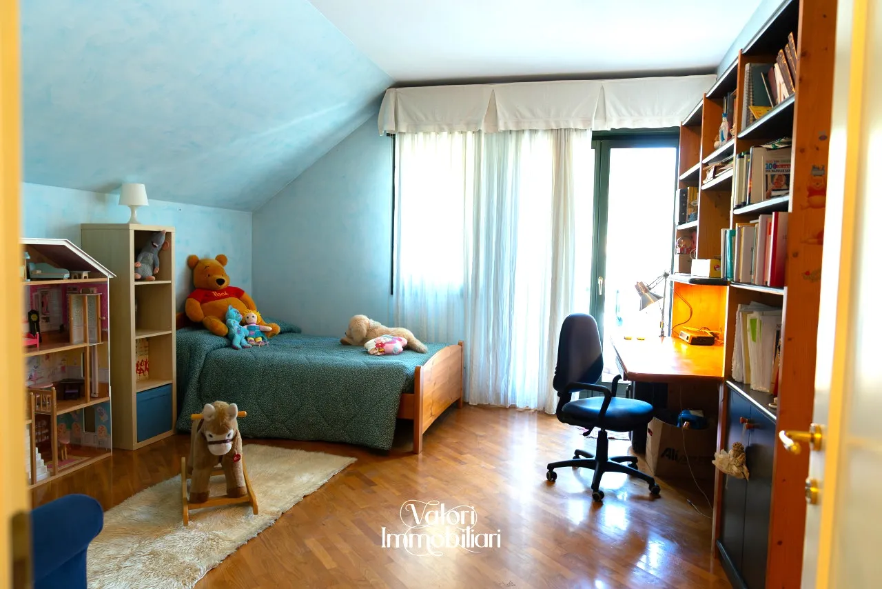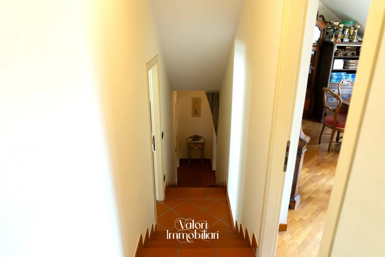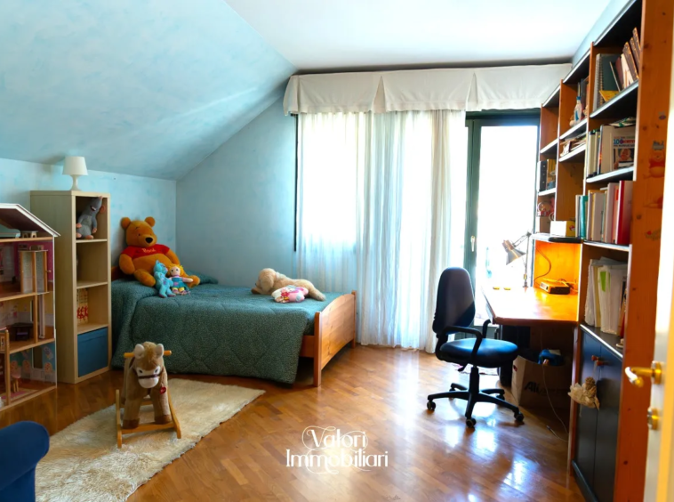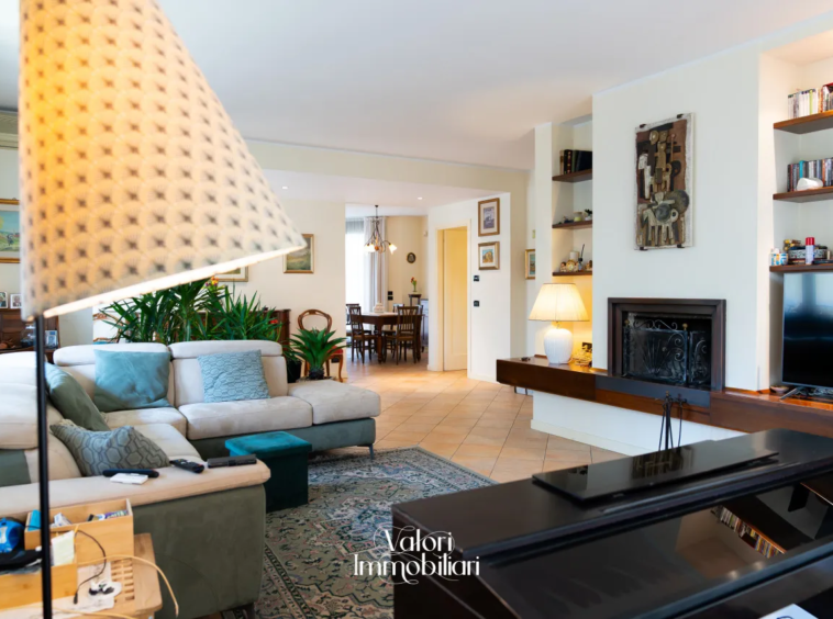 Internamente, l’abitazione presenta tre camere da letto spaziose, ognuna con bagno privato finestrato e cabina armadio. Completano gli spazi interni una mansarda vivibile, studio che può diventare quarta camera da letto e una taverna finestrata completa di camino perfetta per momenti conviviali o come area relax. Funzionali ripostigli e lavanderia ottimizzano ulteriormente gli spazi disponibili.