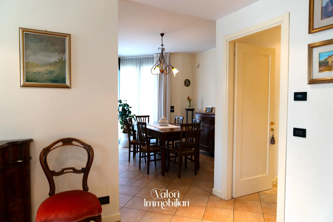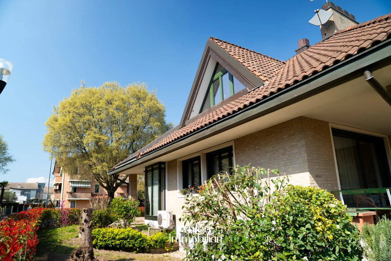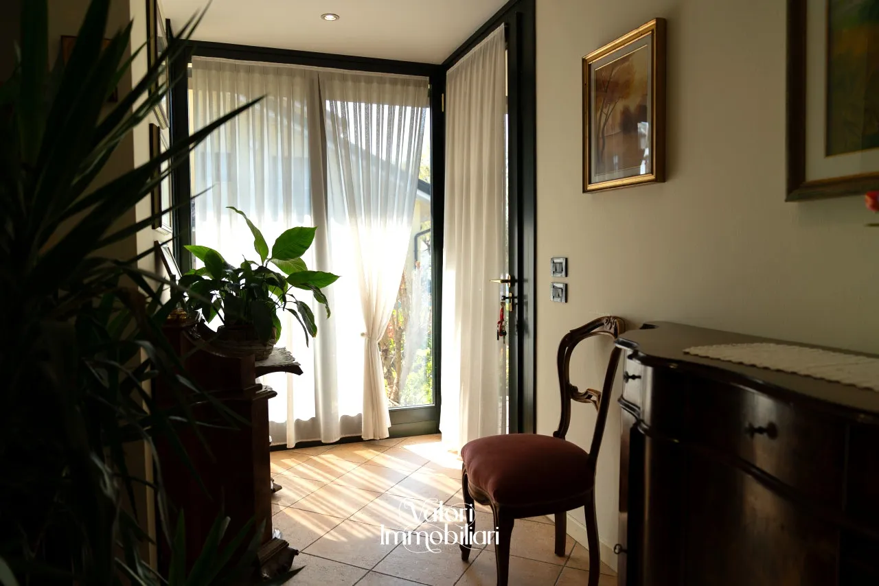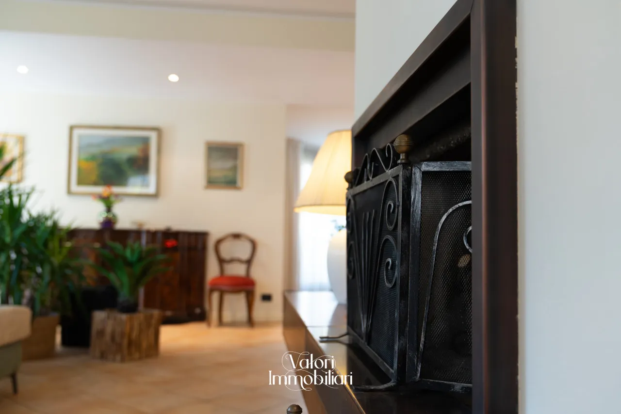 Internamente, l’abitazione presenta tre camere da letto spaziose, ognuna con bagno privato finestrato e cabina armadio. Completano gli spazi interni una mansarda vivibile, studio che può diventare quarta camera da letto e una taverna finestrata completa di camino perfetta per momenti conviviali o come area relax. Funzionali ripostigli e lavanderia ottimizzano ulteriormente gli spazi disponibili.