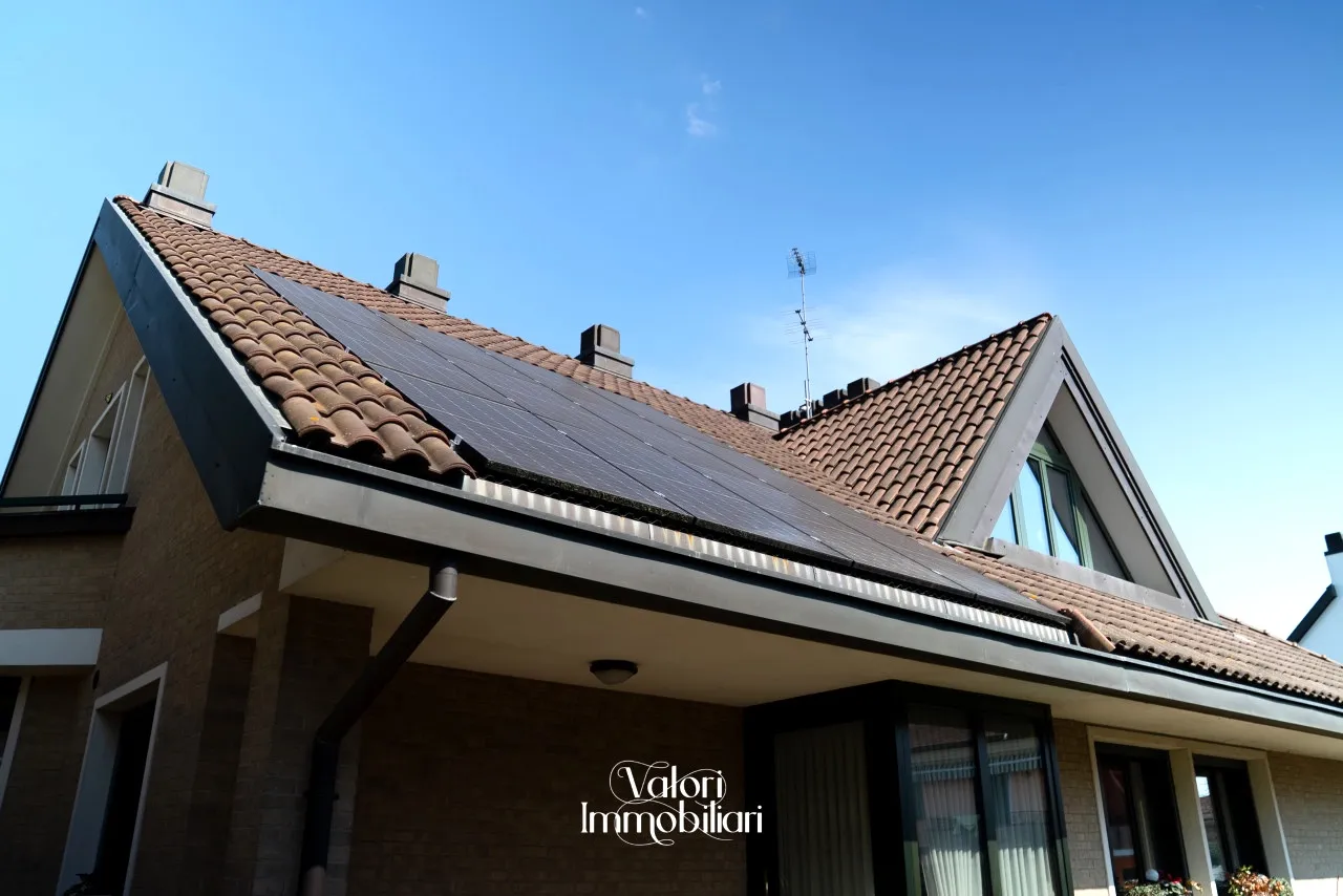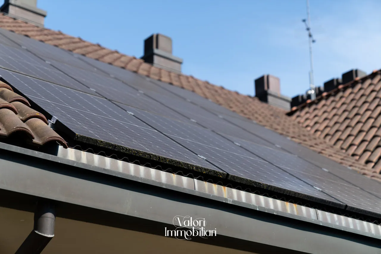 IMPIANTO FOTOVOLTAICO composto da ben 24 pannelli (12 esposti a sud e 12 a est), con una potenza complessiva di quasi 9 kW. Questo sistema non solo consente una produzione energetica costante dall’alba al tramonto, ma offre anche notevoli risparmi sui consumi elettrici.